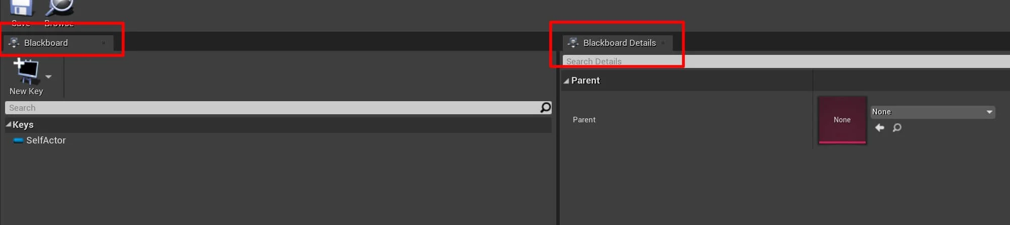Double click BB_EnemyAIData to open the Blackboard in the editor. You will see two tabs in side the Blackboard editor, one named Blackboard and the other Blackboard Details: